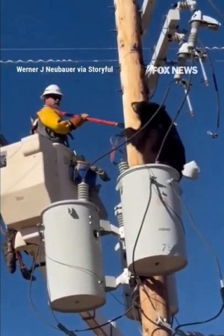 Mój znajomy mamamarcina skomentował absurd: Niedźwiedź na słupie energetycznym